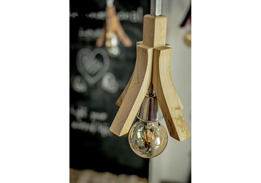 Puppulamp firmata da Ornythos è una lampada a sospensione in legno. La collezione comprende tre diverse dimensioni e diverse specie di legno.