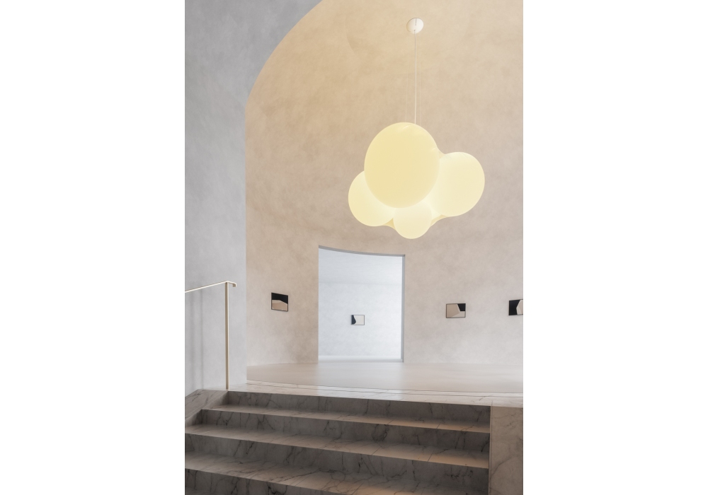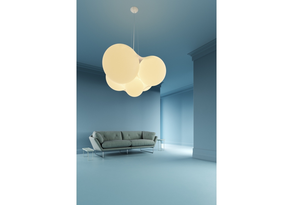 Cloudy firmata da Dima Loginoff per Axo Light è una lampada a sospensione con struttura metallica in alluminio e acciaio, diffusori in materiale plastico con rivestimento in tessuto elastico rimovibile. Disponibile in colore bianco. Sorgente luminosa a LED integrata dimmerabile.