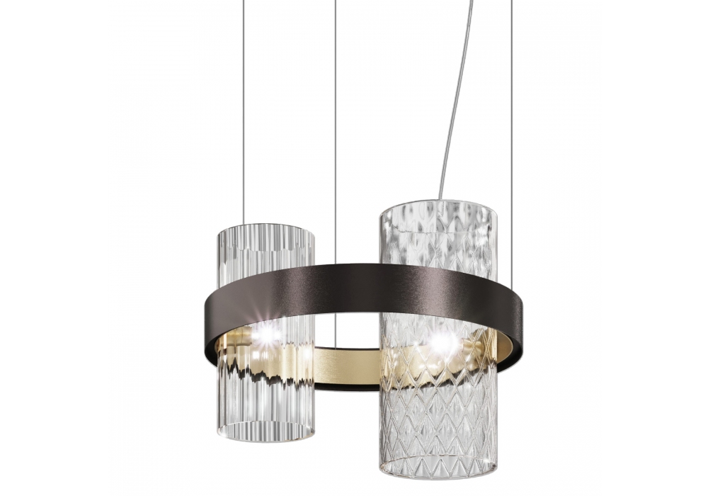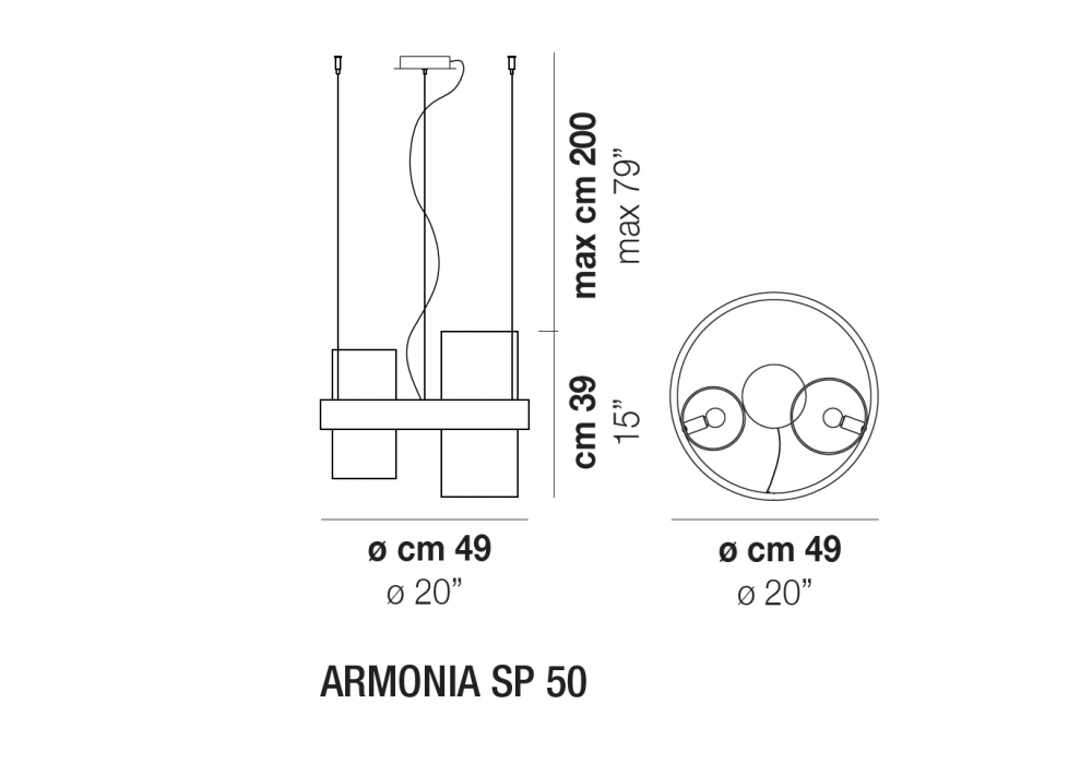 Armonia firmata da Francesco Lucchese per vistosi è una lampada a sospensione con struttuta portante di forma circolare in metallo verniciato. I diffusori sono di forma cilindrica con superficie tramata e schermano una sorgente luminosa con innesto E14 di tipo LED o alogena dimmerabile. Armonia è disponibile in differenti finiture.