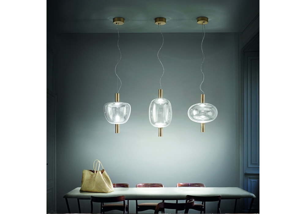 Riflesso SP1 firmata da Chiaramonte & Marin per Vistosi è una lampada a sospensione con struttura portante in metallo verniciato. Il diffusore è di forma ellissoidale in vetro e scherma una sorgente luminosa di tipo LED dimmerabile in differenti gradazioni di luce. Riflesso SP1 è disponibile in differenti finiture.