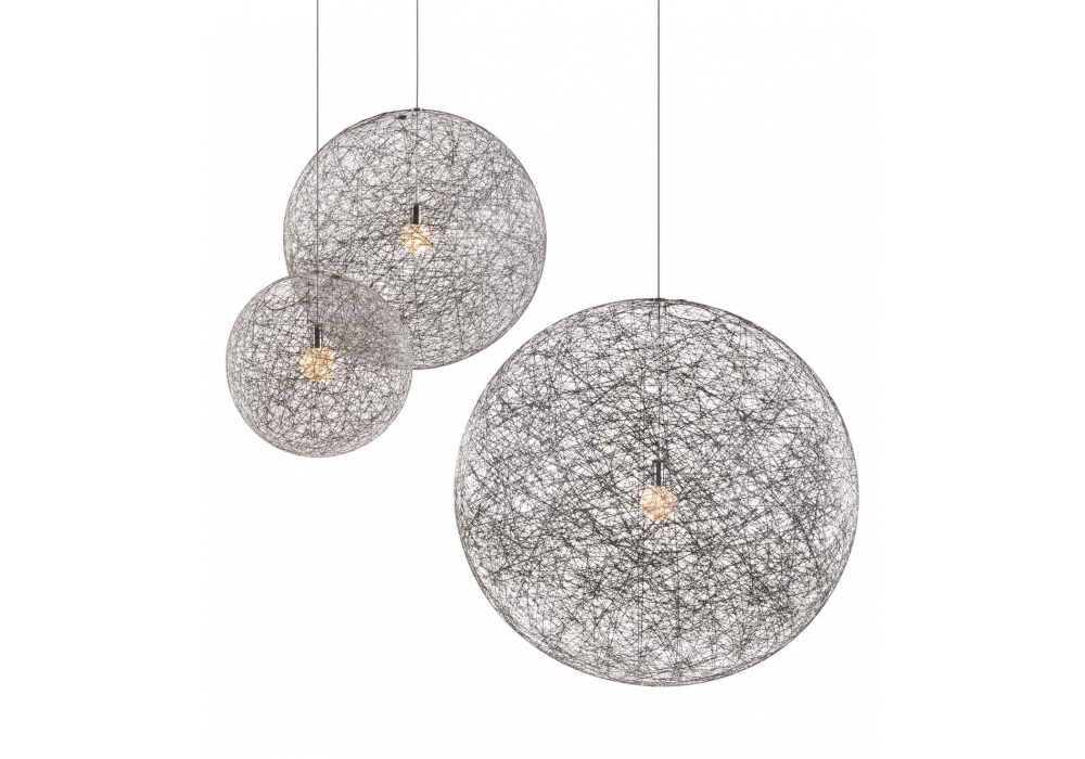 Random Light II firmata da Bertjan Pot per Moooi è una lampada a sospensione con sfera in fibra di vetro e resina epossidica e struttura in acciaio cromato. Disponibile in 3 misure.