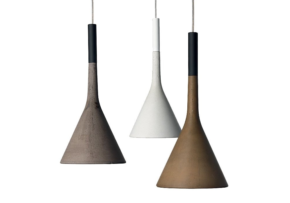 Aplomb firmata da Lucidi e Pevere per Foscarini è una lampada a sospensione con collo di supporto in alluminio e corpo lampada in cemento colato a mano in differenti finiture. La sorgente luminosa adottata è con innersto GU10.