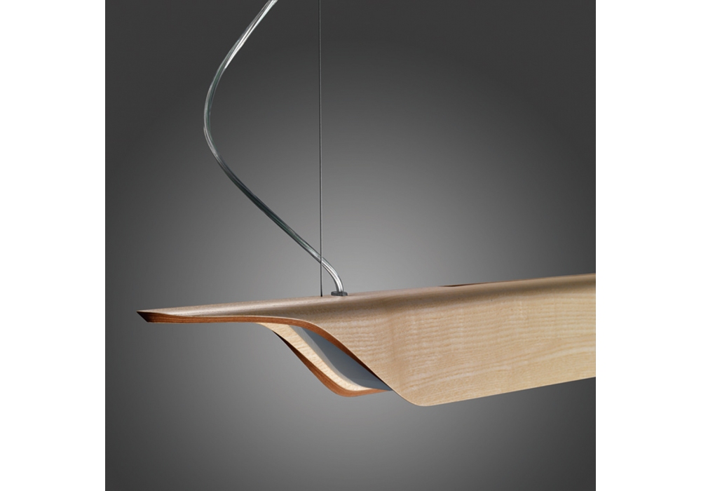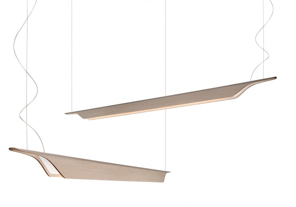 Troag firmata da Luca Nichetto per Foscarini è una lampada a sospensione strutturata in legno multistrato di frassino naturale. Il diffusore è in PMMA e scherma una sorgente luminosa di tipo LED dimmerabile in differenti versioni.