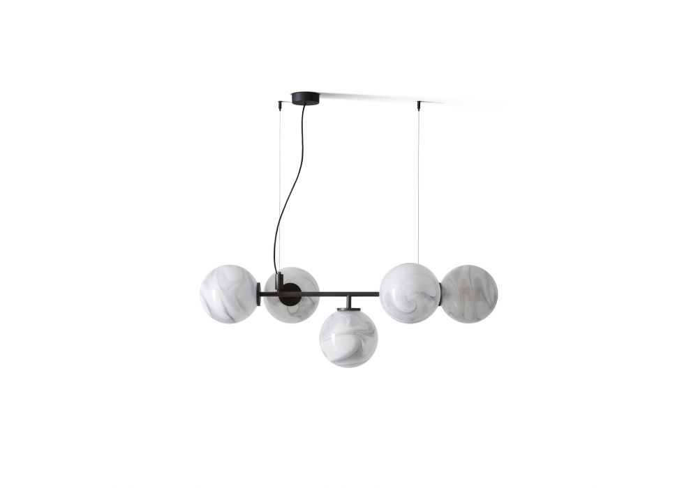 089 Starburst firmata da Cassina è una lampada a sospensione con struttura nera e paralumi disponibili in 2 finiture.
