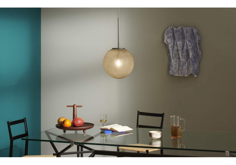 089 Bollicosa Small firmata da Cassina è una lampada a sospensione con struttura in metallo e paralume in vetro. Disponibile in diverse finiture.