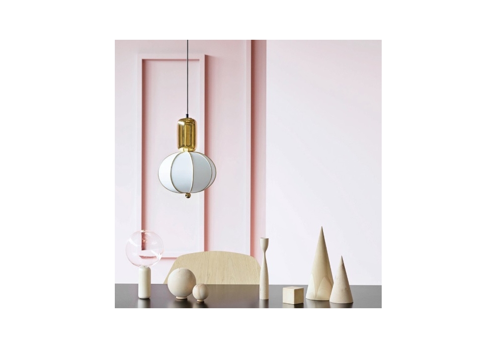 Balloon 7206/1Pfirmata da Matteo Zorzenoni per MMLampadari è una lampada a sospensione con diffusore in tessuto. La struttura in metallo è disponibile in due varianti (Nero Opaco e Oro 24K).