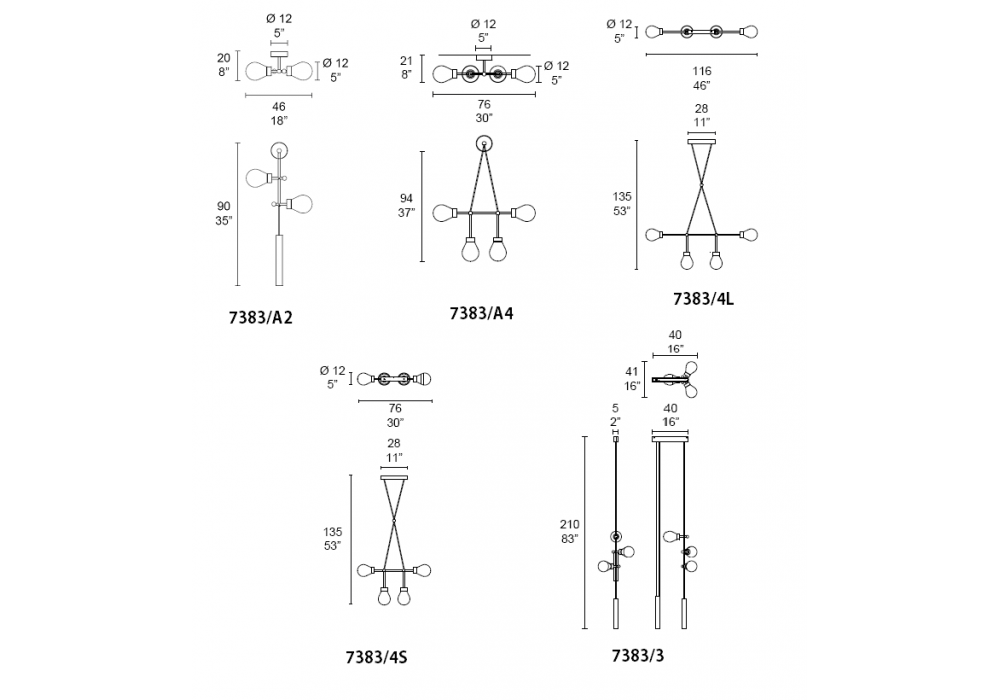 | Dimensioni | 46 x 20 x H 90 cm (7383/A2); 76 x 21 x H 94 cm (7383/A4); 76 x H 135 cm ( 7383/4S); 116 x H 135 cm (7383/4L); 41 x 40 x H 210 cm (7383/3). |