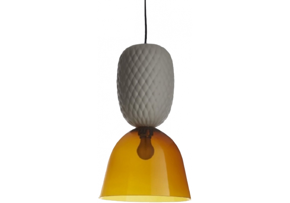 Pineapple 7214/1 firmata da Matteo Zorzenoni per MMLampadari è una lampada a sospensione con paralume in vetro lucido e struttura in ceramica, disponibile in cinque combinazioni di colori.