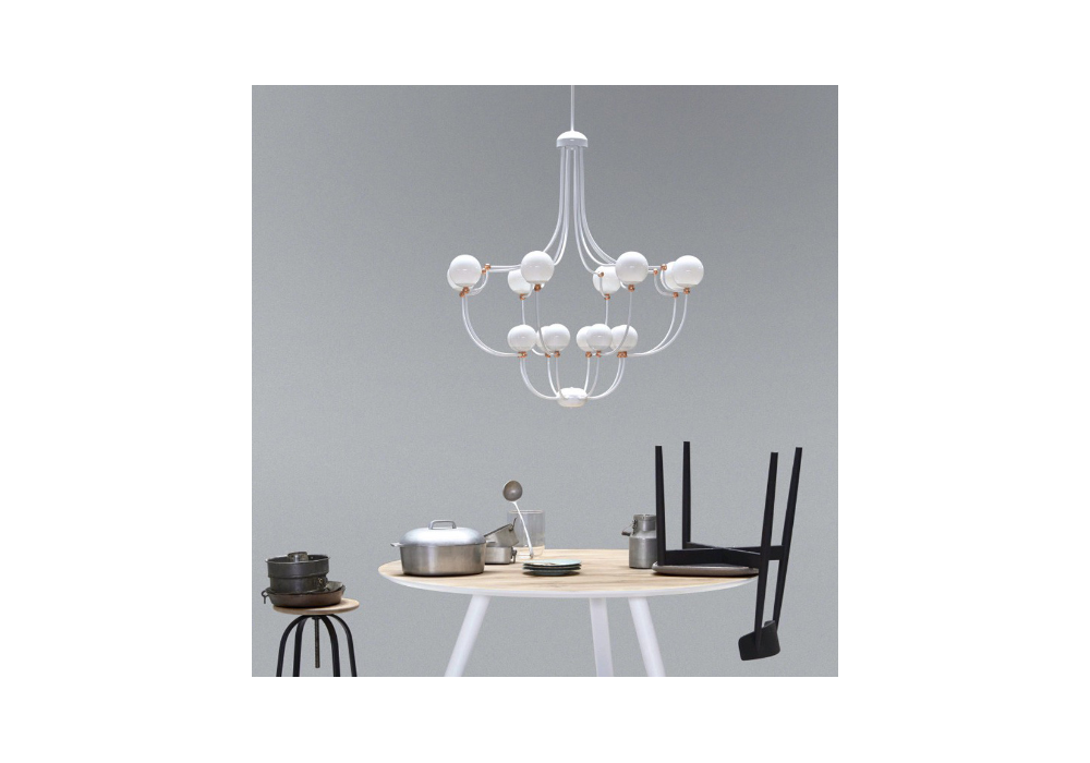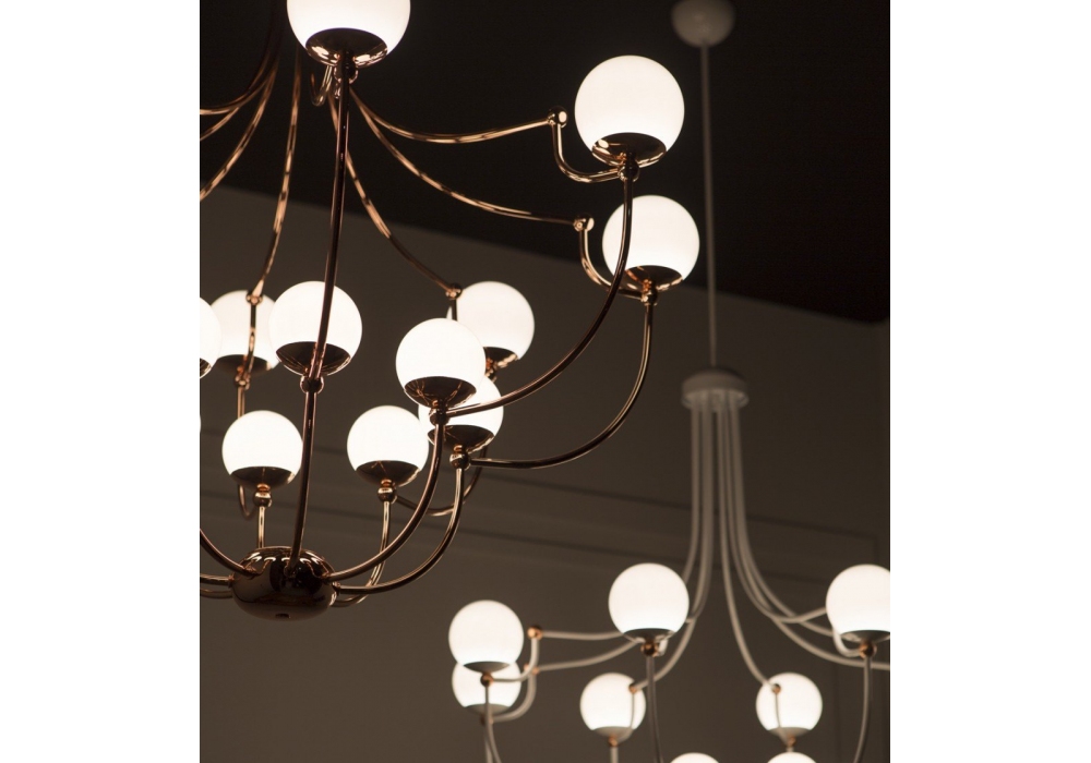 Dots 7210/16 firmata da Matteo Zorzenoni per MMLampadari è una lampada a sospensione con diffusori in vetro bianco e struttura in metallo disponibile in diverse varianti di colore.