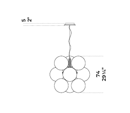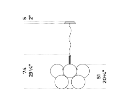 Bolle Cielo firmata da Massimo Castagna per Gallotti&Radice è una lampada a sospensione con struttura in ottone brunito a mano, disponibile con 6 o 9 sfere in cristallo trasparente soffiato a bocca. Con cavo elettrico e cavo di acciaio da 4 mt. per regolare l’altezza. Lampadine (LED) incluse.