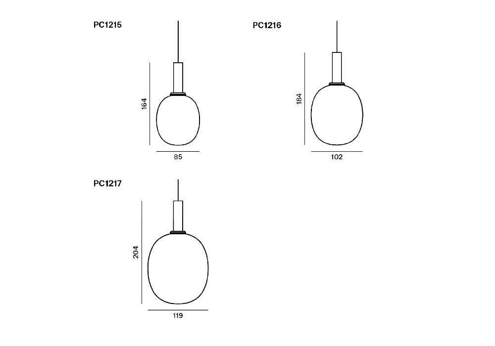 | Dimensioni | Ø 8,5 x H 16,4 cm; Ø 10,2 x H 18,4 cm; Ø 11,9 x H 20,4 cm. |