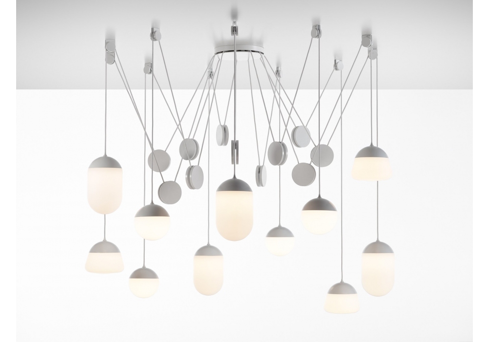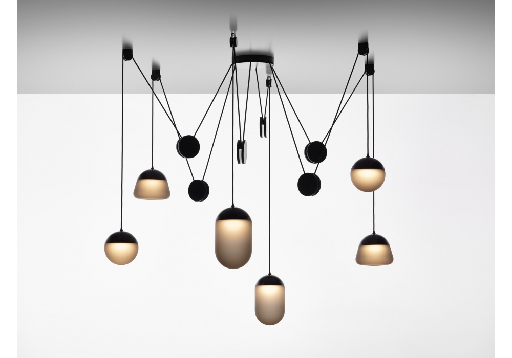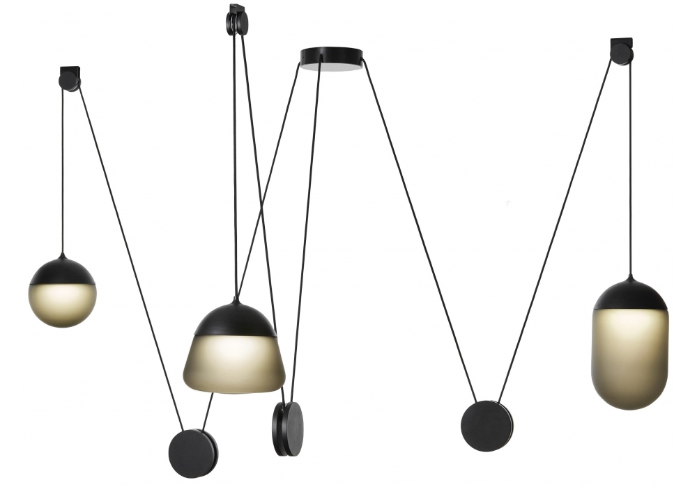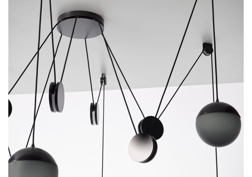 Planets firmata da Vrtiška & Žák per Brokis è una collezione di lampade a sospensione con struttura in ferro verniciata a polvere nera o bianca opaca. La parte in vetro è disponibile grigio fumo o triplex opalino acidata. Planets è un insieme di lampade componibili a 360° in altezza, dimensione, modello e numero di diffusori.