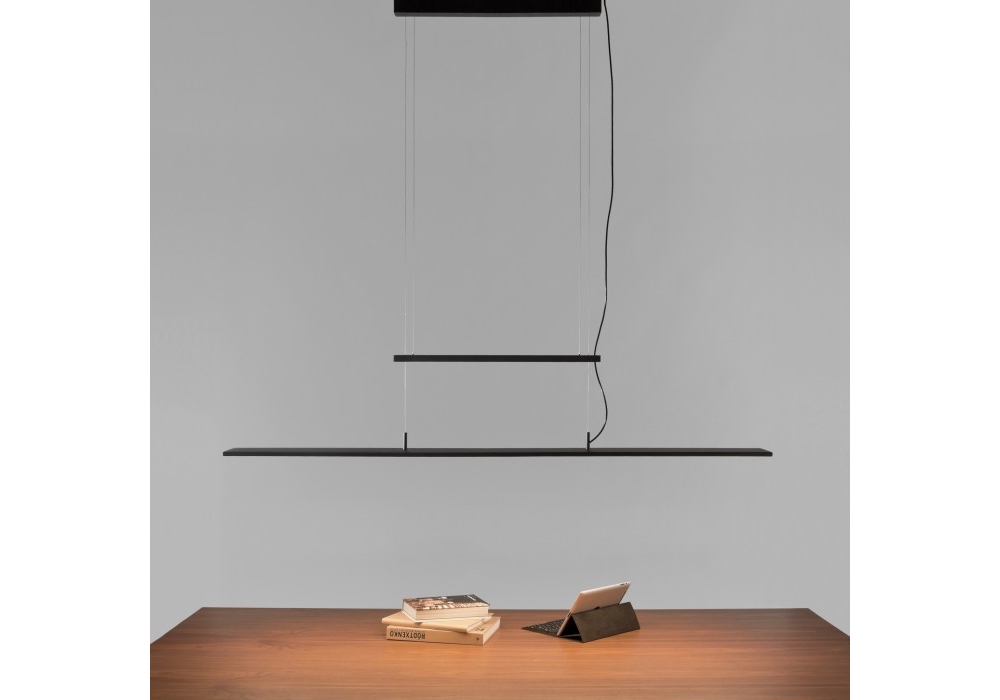 BlancoWhite Golden Gate firmata da Antoni Arola per Santa&Cole è una lampada a sospensione con struttura in metallo e finitura opaca. Dimmer e interruttore incorporati nell'apparecchio. Lampada regolabile in altezza.