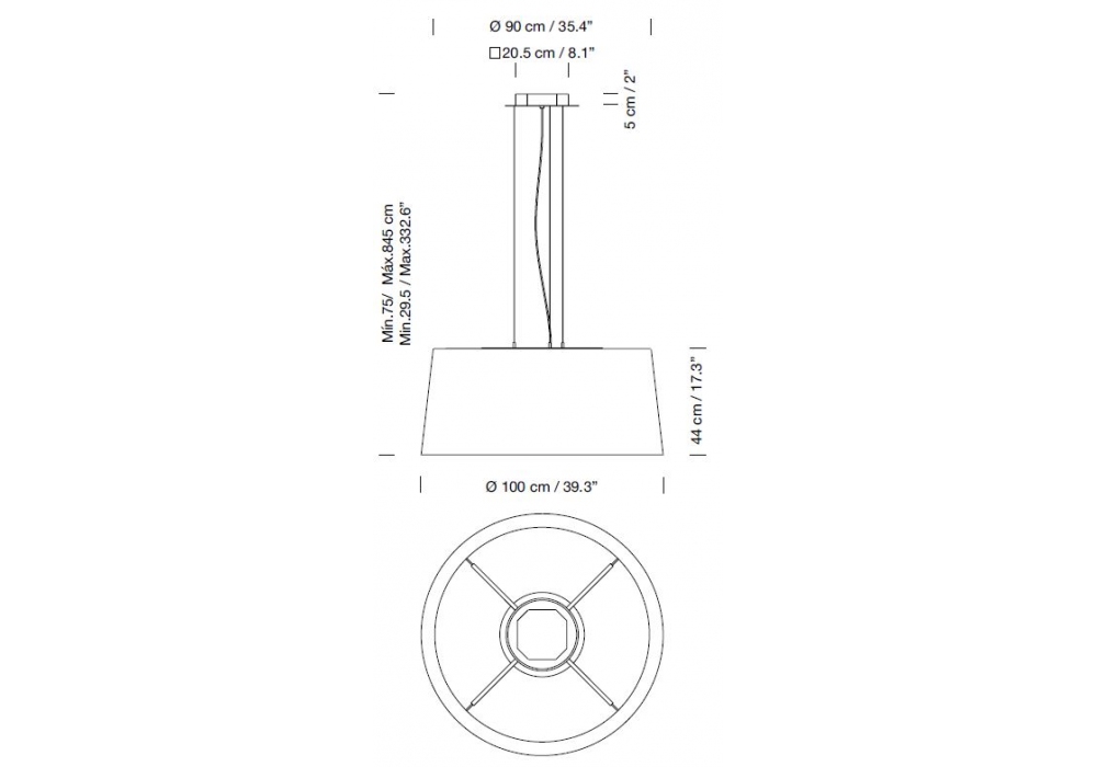 | Dimensioni | Ø 100 x H Min .75 - Max. 845 cm |