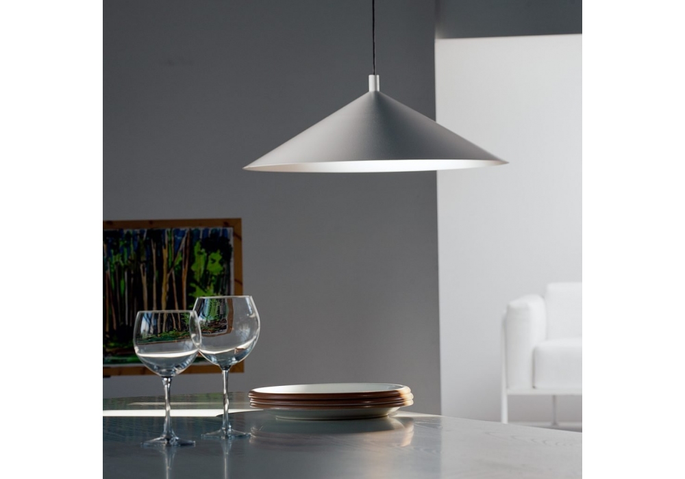 Cono firmata da Elio Martinelli per Martinelli Luce è una lampada a sospensione di forma conica interamente strutturata in alluminio verniciato. La sorgente luminosa adottata è di tipo LED. Cono è disponibile in differenti dimensioni e finiture.