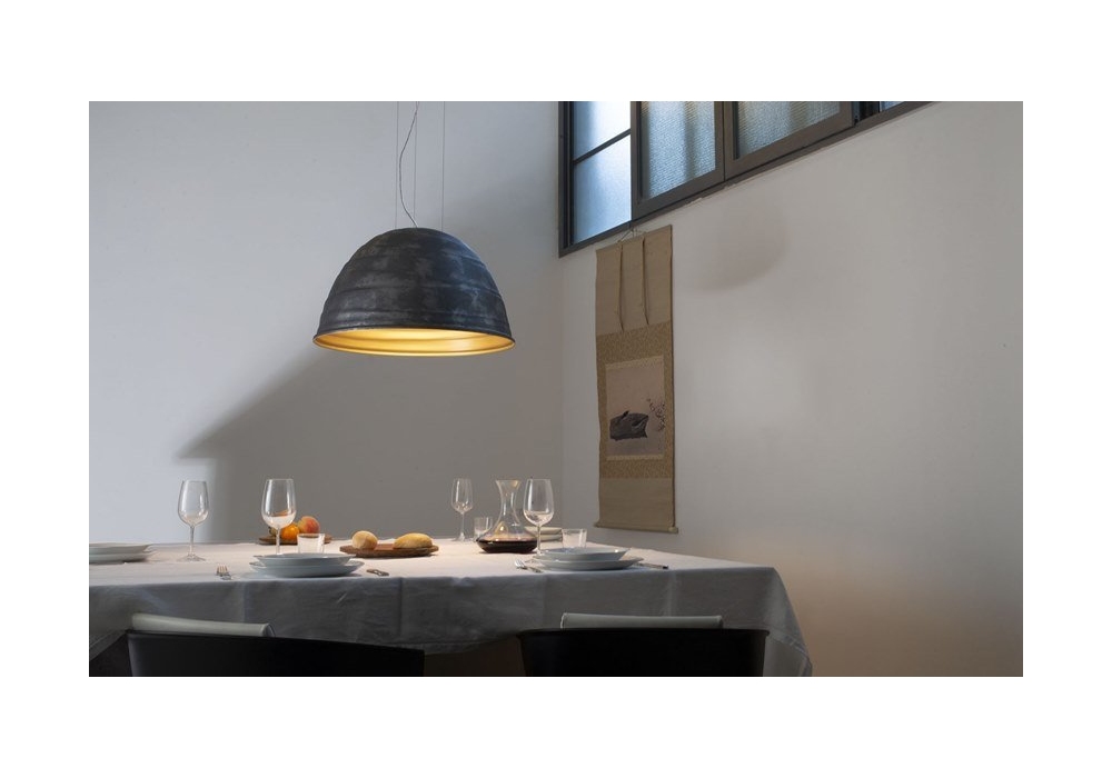 Babele firmata da Marc Sadler per Martinelli Luce è una lampada a sospensione di forma circolare interamente strutturata in alluminio verniciato, internamente color oro esternamente colore micaceo. La sorgente luminosa adottata è di tipo LED. Babele è disponibile in differenti dimensioni.
