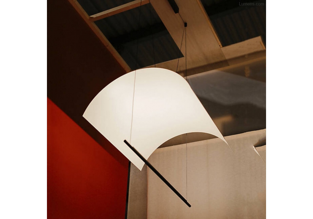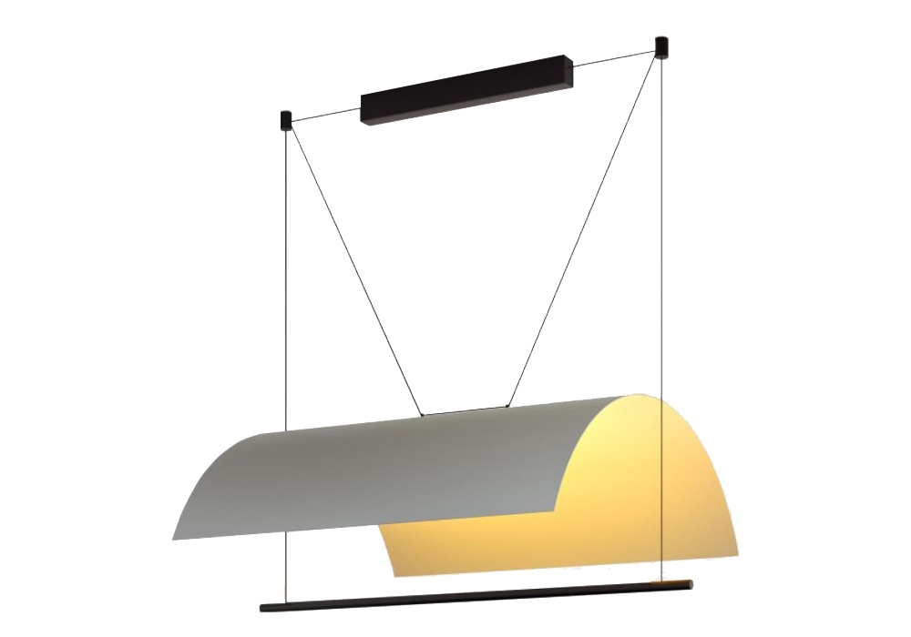 Lamina Mayor firmata da Antoni Arola per Santa&Cole è una lampada a sospensione in alluminio bianco che emana luce in maniera riflessa.