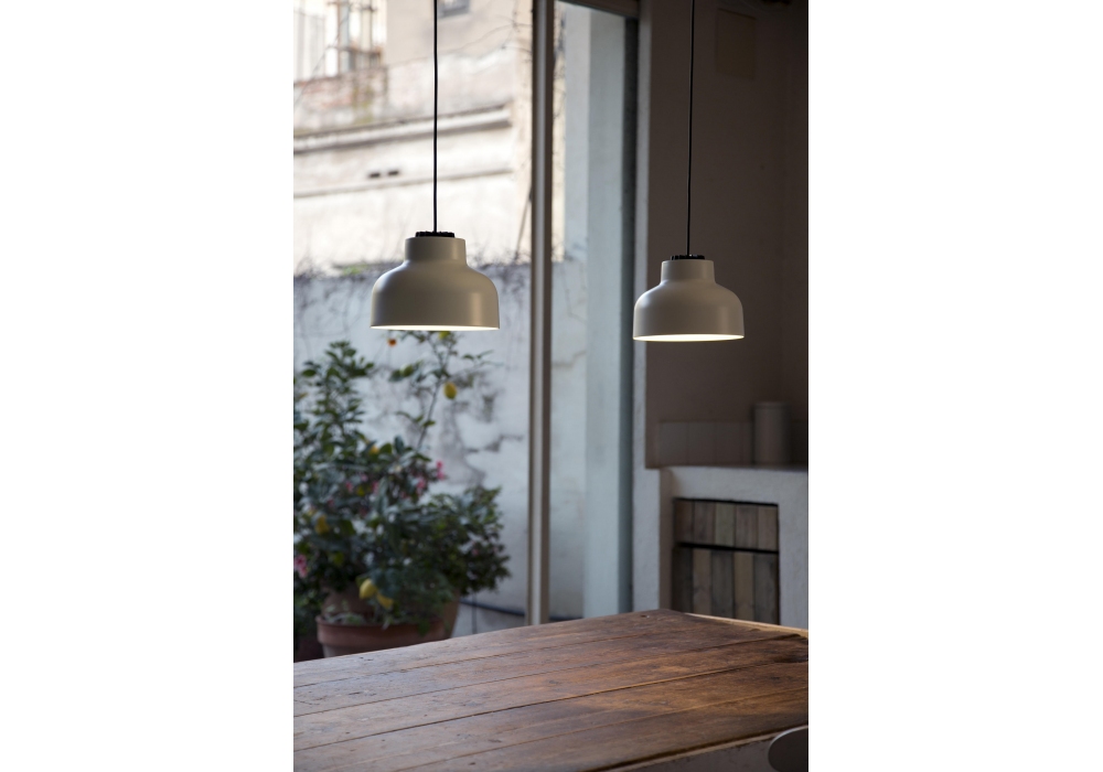 M64 firmata da Santa&Cole è una lampada a sospensione con un diffusore circolare in metallo. Disponibile in vari colori con o senza dimmer.