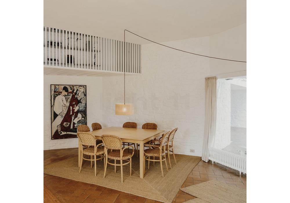 Nagoya disegnata da Ferran Freixa per Santa&Cole è una lampada a sospensione con un diffusore circolare in striscie di legno.