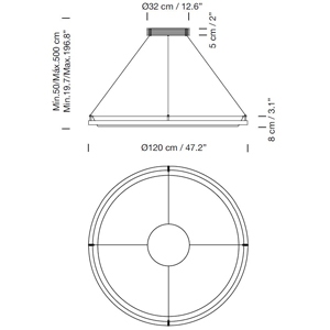 | Dimensioni | Ø 60 x H Min. 50 - Max. 500 cm; Ø 85 x H Min. 50 - Max. 500 cm; Ø 120 x H Min. 50 - Max. 500 cm; Ø 180 x H Min. 50 - Max. 500 cm; |