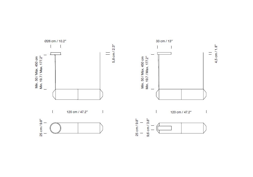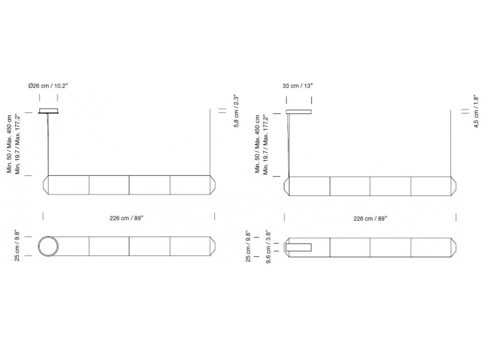 | Dimensioni | P1: Ø 25 x 67 cm; P2: Ø 25 x 120 cm; P3: Ø 25 x 173 cm; P4: Ø 25 x 226 cm; |