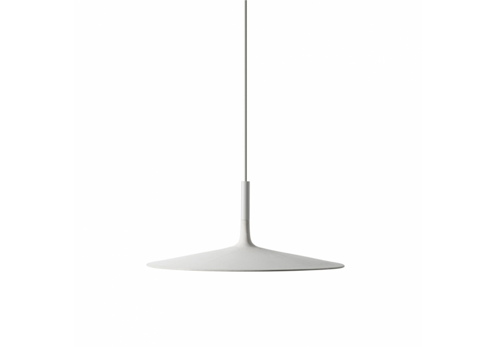 Aplomb Large firmata da Lucidi e Pevere per Foscarini è una lampada a sospensione di forma circolare con collo di supporto in alluminio e corpo lampada in cemento colato a mano in differenti finiture. Il diffusore è in policarbonato e scherma una sorgente luminosa di tipo LED in versione dimmerabile o non dimmerabile.