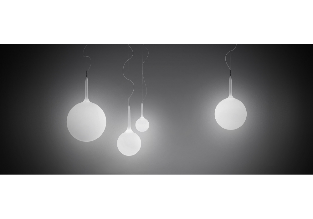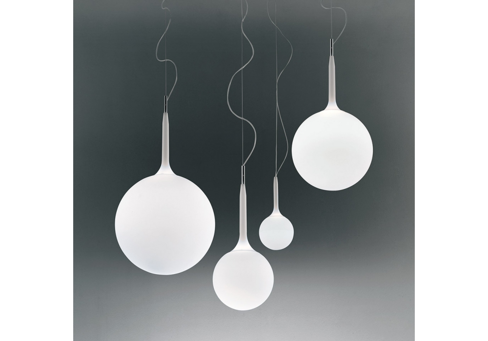 Castore firmata da Michele De Lucchi, Huub Ubbens per Artemide è una lampada a sospensione con diffusore sferico in vetro soffiato bianco. La sorgente luminosa adottata è di tipo LED regolabite tramite dimmer ed è dispobibile in differenti dimensioni.