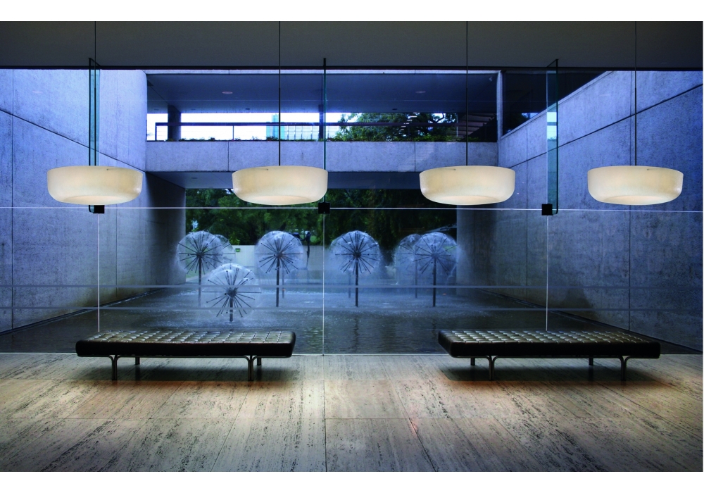 Ola Fly firmata da Enrico Franzolini per Quadrifoglio Group è una lampada a sospensione con paralume in fibra di vetro disponibile in diverse finiture e struttura in metallo verniciato nero goffratino.