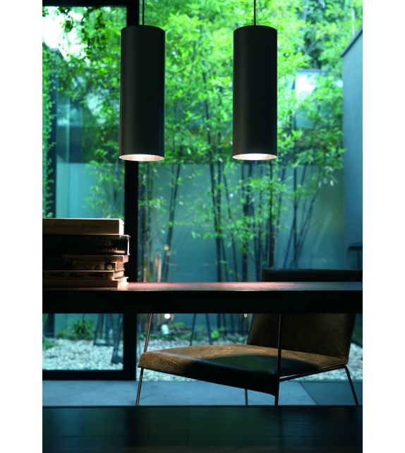 Tube firmata da Enrico Franzolini per Quadrifoglio Group è una lampada a sospensione con struttura in alluminio verniciato, disponibile in diverse finiture. Rosone a soffitto in metallo verniciato nero. Disponibile anche in 2 dimensioni.