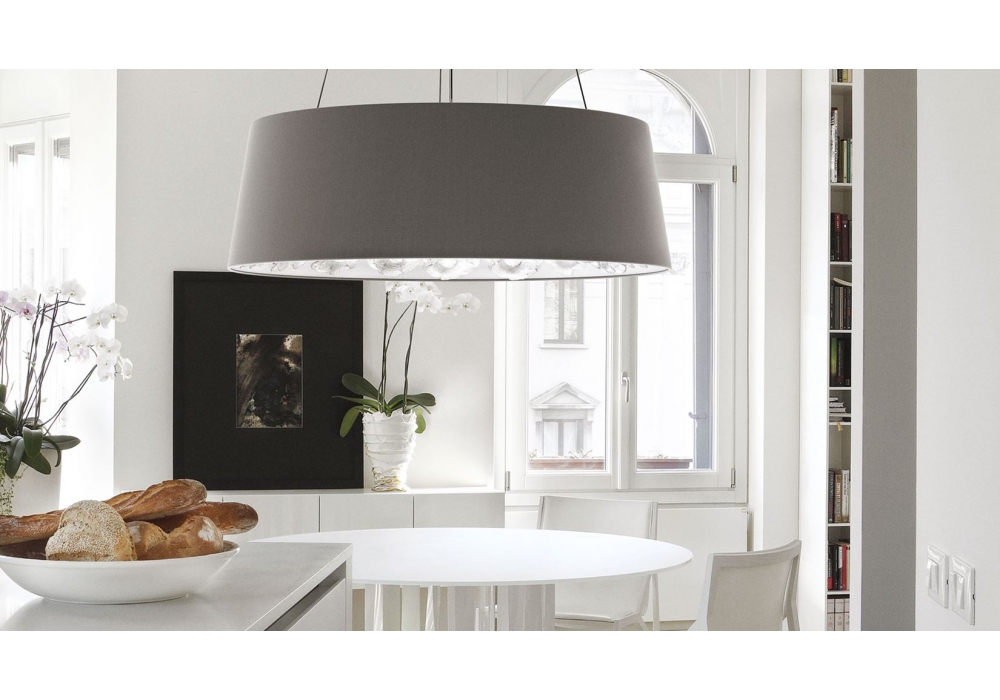 New Eden firmata da Daniela Puppa e Francesca Martelli per Barovier & Toso è una lampada a sospensione con corpo lampada cilindrico, sostenuto da tre tiranti in metallo. Il diffusore è la peculiarità di questa lampada, una composizione floreale realizzata in vetro veneziano e scherma delle sorgenti luminose di tipo LED. New Eden è disponibile in differenti dimensioni e finiture.
