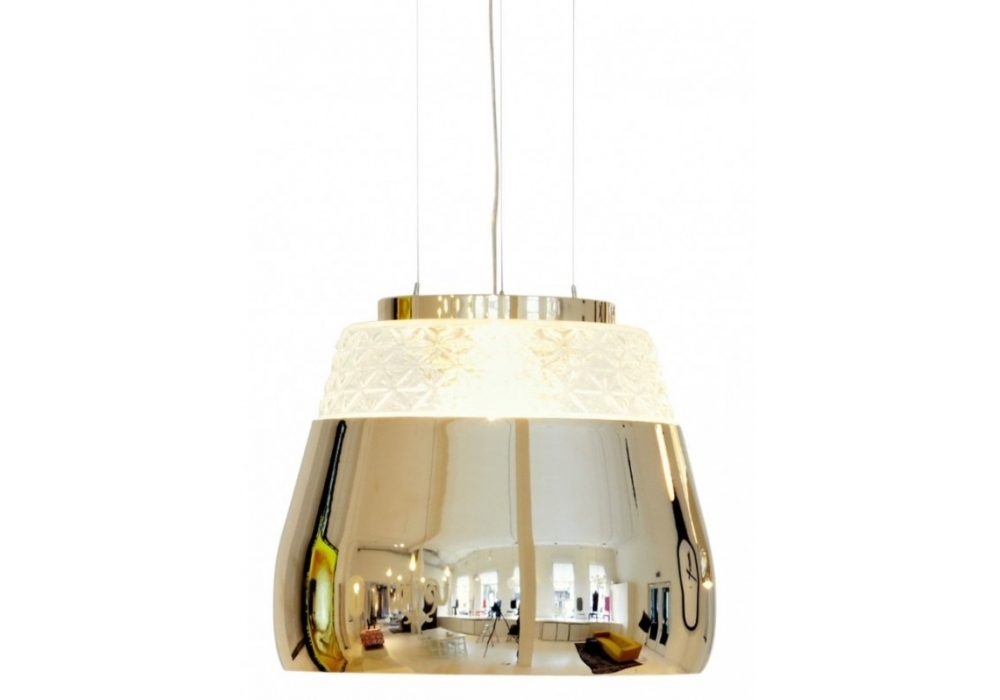Valentine firmata da Marcel Wanders Studio per Moooi è una lampada a sospensione dimmerabile con vetro soffiato trasparente e paralume in metallo disponibile in tre finiture. Cavo di colore trasparente. Rosone abbinato al cilindro in acciaio.