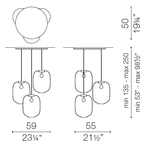 Arya firmato da Giulio Cappellini & Antonio Facco per Cappellini è un sistema a sospensione realizzato con attacco a soffitto in metallo verniciato nero opaco e diffusori in vetro opaco colorato. Disponibile in diverse finiture e modelli.