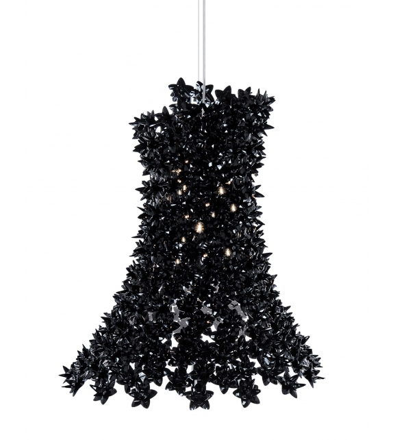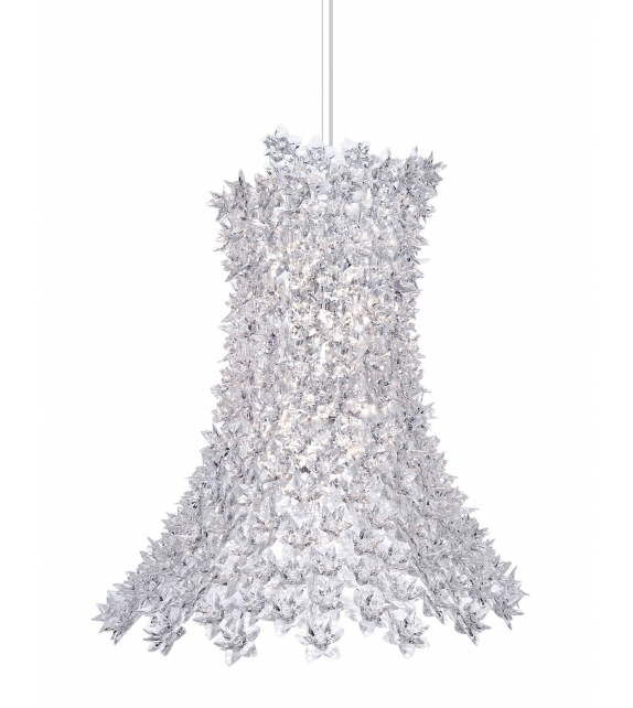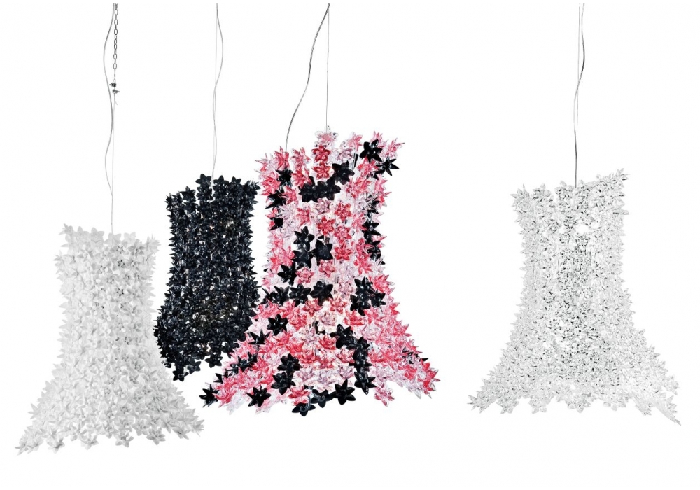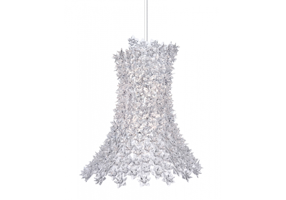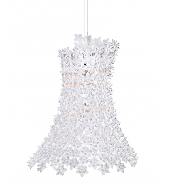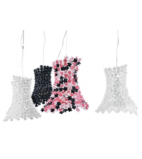 Bloom firmata da Ferruccio Laviani per Kartell è una lampada a sospensione realizzata con struttura in policarbonato trasparente o colorato in massa e fiori in tecnopolimero termoplastico. Disponibile in diverse finiture.