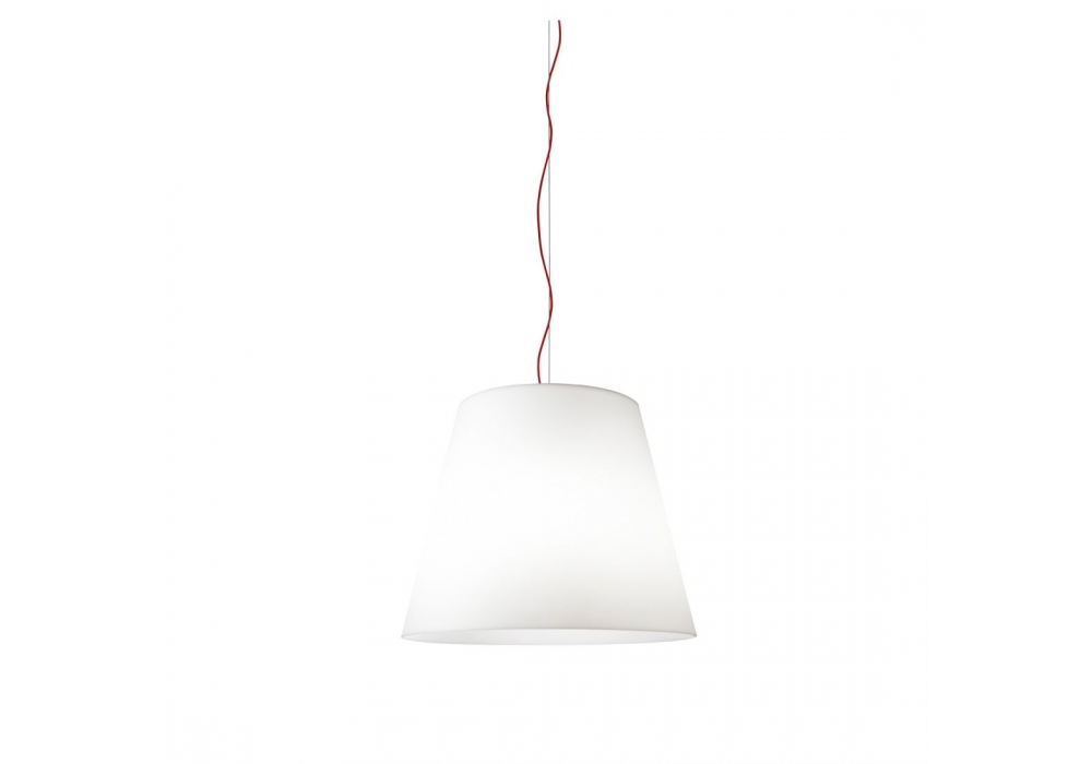 Amax firmata da Charles Williams per Fontana Arte è una lampada a sospensione a luce diffusa dimmerabile con montatura in metallo cromato e diffusore in polietilene bianco. Il cavo di sospensione è in acciaio, mentre quello di alimentazione è in tessuto rosso. Disponibile in differenti dimensioni.