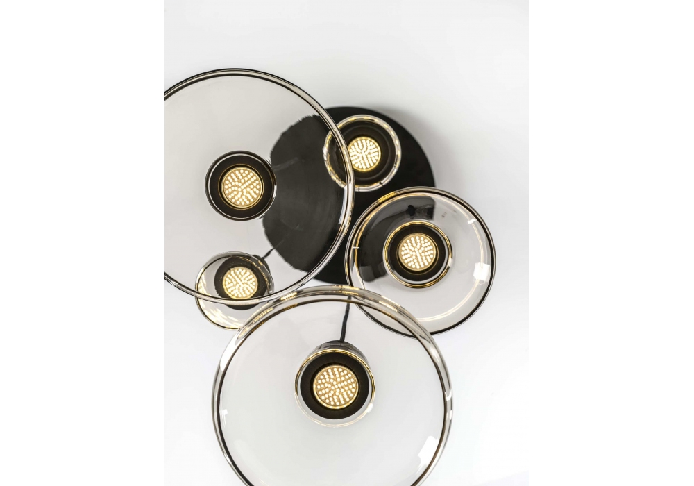 Shadows Set Ring firmata da Koldova Dan Yeffet per Brokis è una lampada a sospensione con diffusori in vetro soffiato in varie finiture lucide o con superficie esterna acidata, che schermano una sorgente luminiosa dimmerabile di tipo LED. Rosone in metallo verniciato a polvere bianco o nero opaco. Cavo alimentazione in fibra tessile in varie colorazioni.