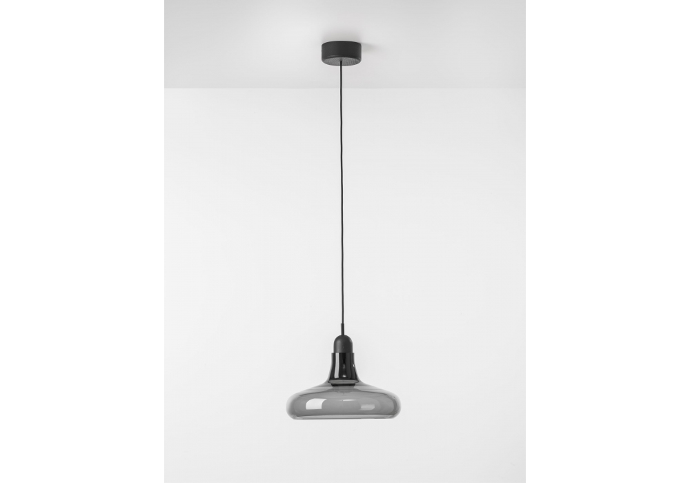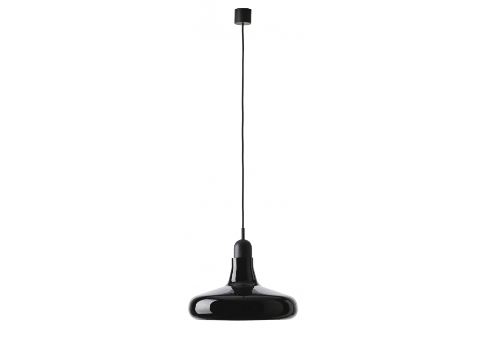 Shadows XL firmata da Koldova, Dan Yeffet per Brokis è una lampada a sospensione con rosone e collo lampada in legno disponibile in differenti finiture. Il diffusore è in vetro soffiato e scherma una sorgente luminosa di tipo LED dimmerabile alimentata da un cavo rivestito in fibra tessile.