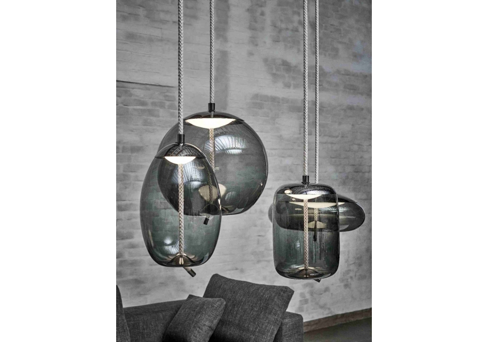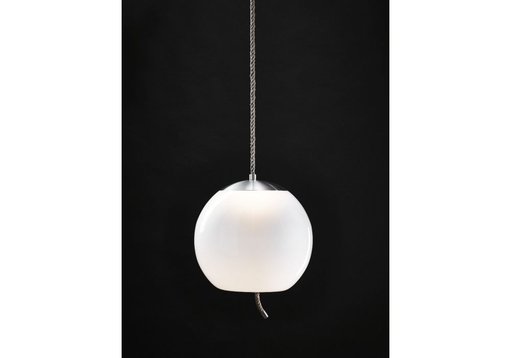 Knot firmata da Chiaramonte Marin per Brokis è una lampada a sospensione con cavo di sospensione in corda di lino ancorata su una placca metallica verniciata. Il diffusore è in vetro soffiato ed ha differtenti forme e colori mentre il riflettore interno ed il rosone sono in metallo. La sorgente luminosa adottata è di tipo LED dimmerabile. Knot è disponibile in differenti versioni e modelli.