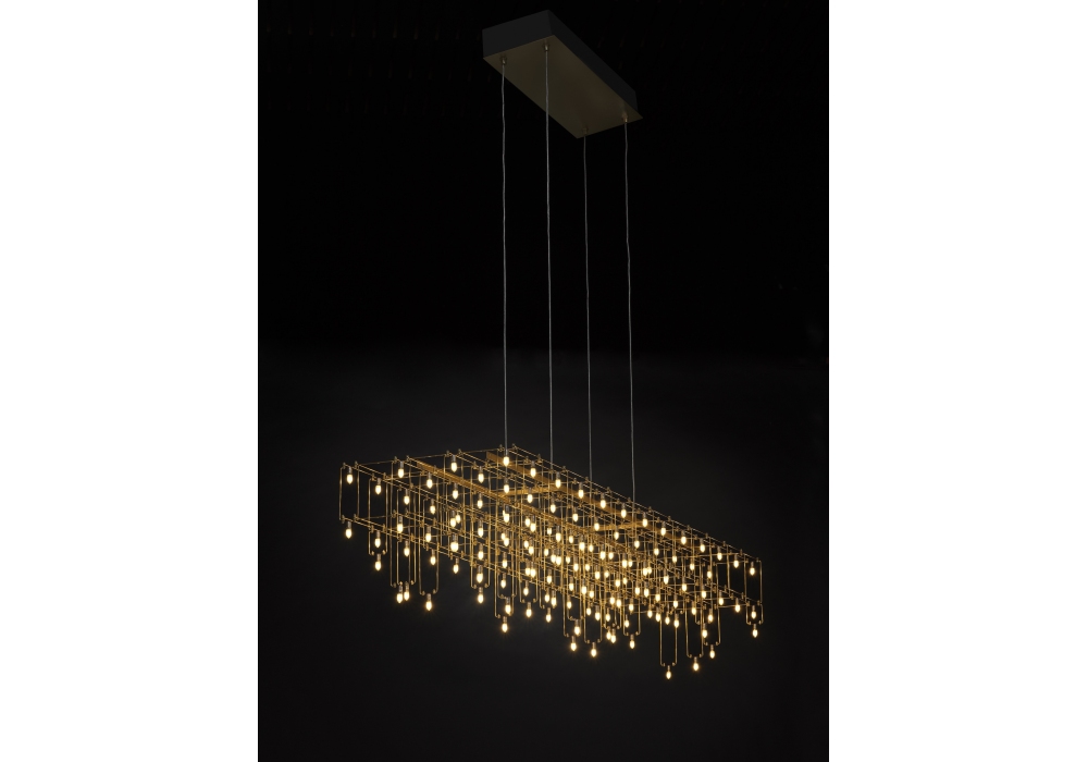 Universe Square with Drops firmata da Jan Pauwels per Quasar è una lampada a sospensione con rosone nero e cover in tinta con la struttura. Il corpo lampada di forma quadrangolare è strutturato da una serie di aste tubolari verniciate ancorate l'una all'altra. Le sorgenti luminose fissate alla struttura portante sono di tipo LED. Universe Square with Drops è disponibile in differenti modelli e finiture.