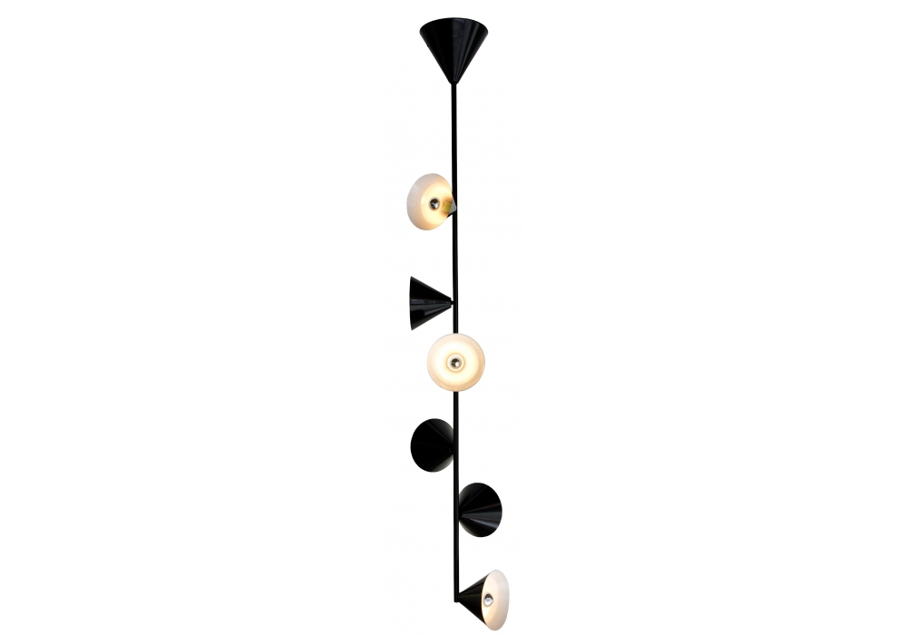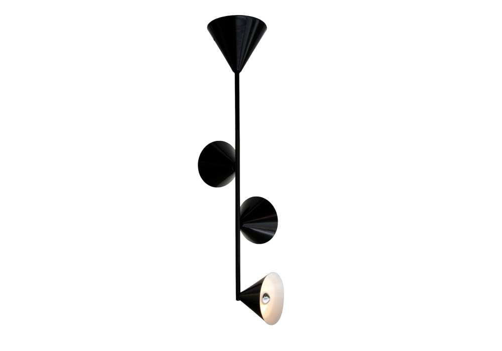 Vertical One firmata da Atelier Areti è una lampada da soffitto realizzata in metallo verniciato nero o bianco, composta da tre o sei coni, riflettore disponibile nelle finiture ottone o bianco.