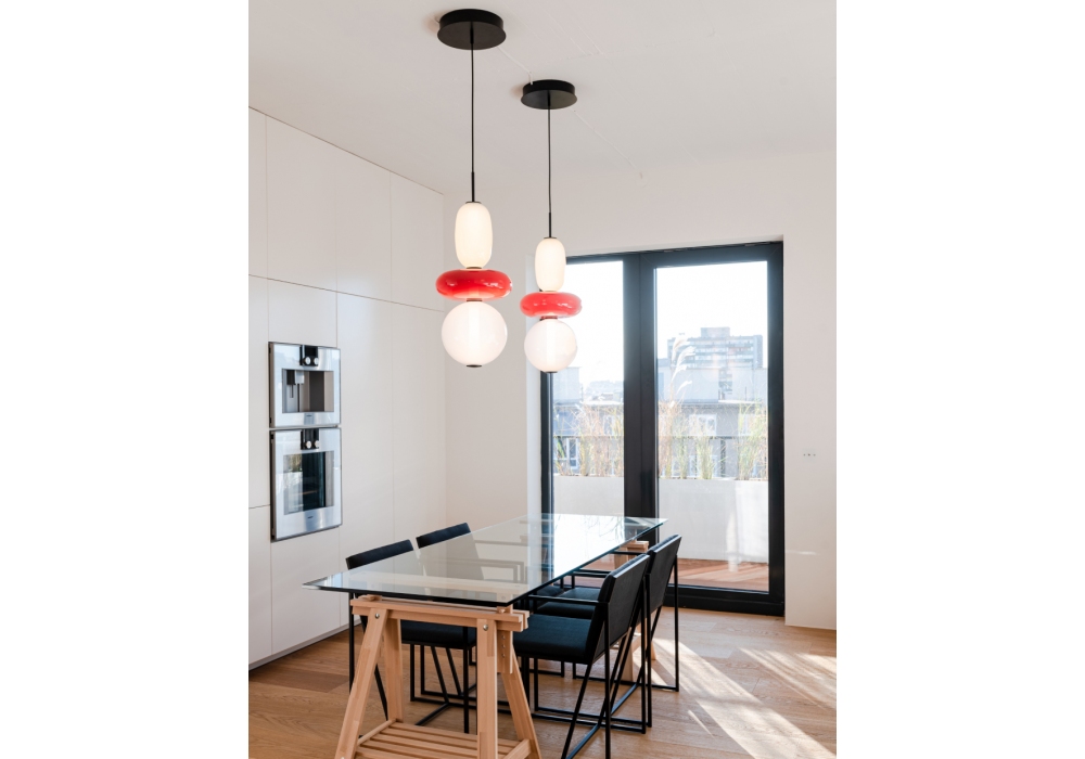 Pebbles firmata da Boris Klimek per Bomma è una lampada a sospensione realizzata a mano in cristallo soffiato a bocca. È disponibile in diverse configurazioni e finiture.