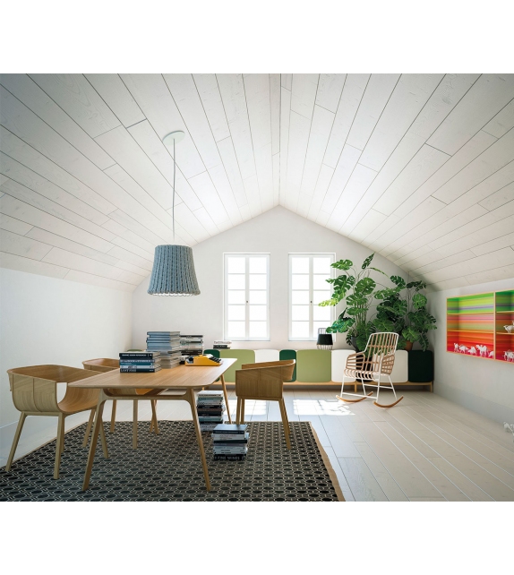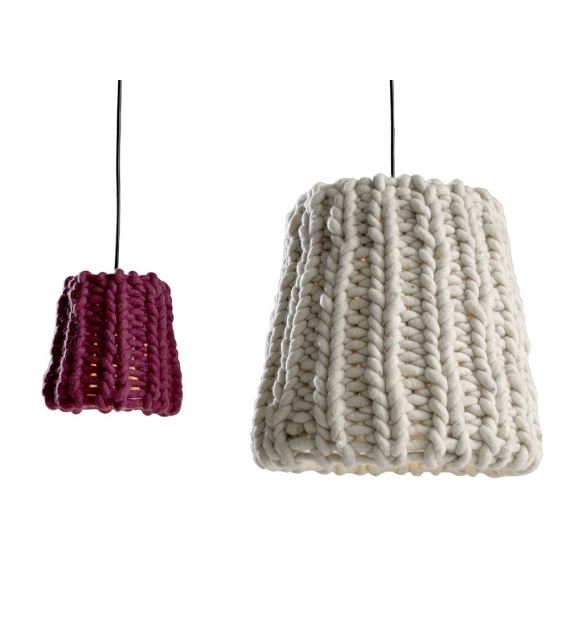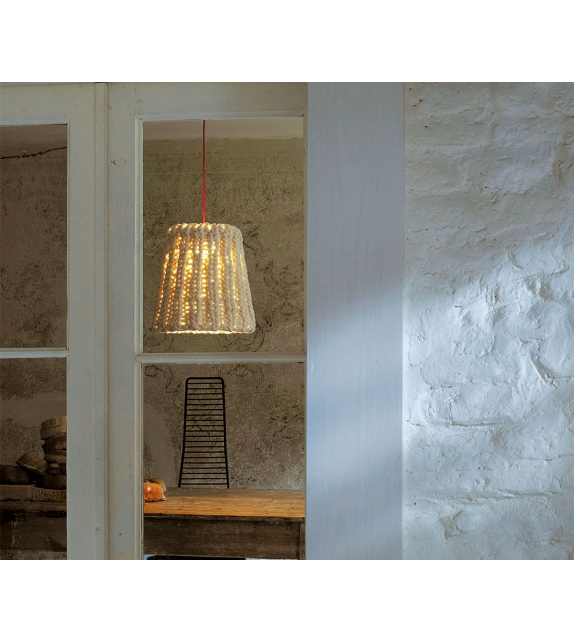 Granny firmata da Pudelskern per Casamania & Horm è una lampada a sospensione realizzata con paralume con grossi fili di lana intrecciati a mano. Alla lana viene applicato un trattamento naturale anti tarme e anti acari. Disponibile in diverse finiture e dimensioni.