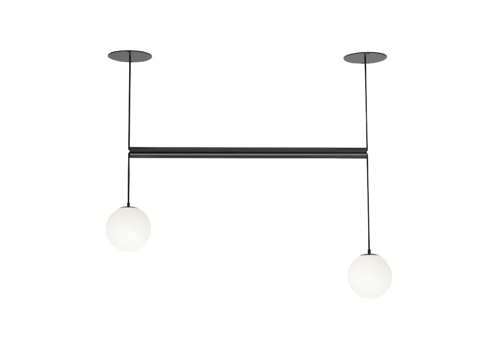 Tube with Globes firmata da Atelier Areti è una lampada a sospensione realizzata in metallo verniciato o in ottone spazzolato. Disponibile in due modelli.
