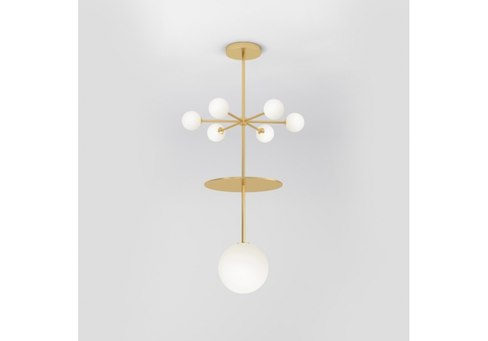 Epic Variations firmata da Atelier Areti è un lampadario a sospensione realizzato in ottone e diffusori in vetro bianco. Disponibile in diversi modelli.