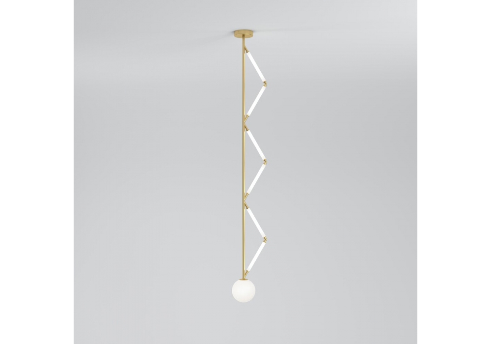 Side Triangle firmata da Atelier Areti è una lampada a sospensione realizzata in ottone spazzolato o nichel e diffusori in vetro bianco. Disponibile in diversi modelli.