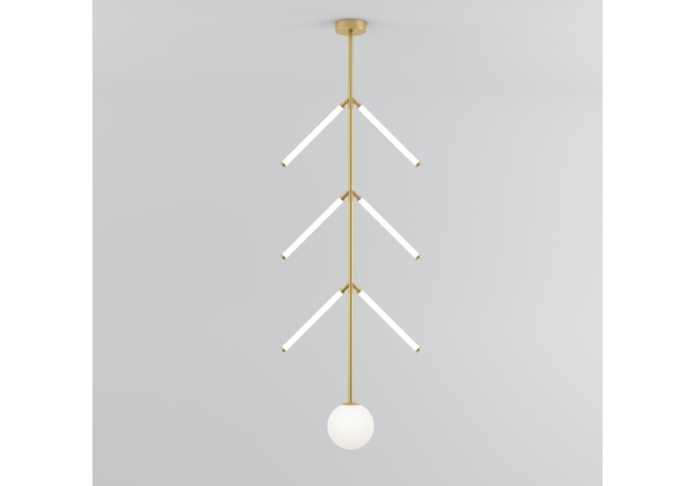 Arrow firmata da Atelier Areti è una lampada a sospensione realizzata in ottone spazzolato o nichel e diffusori in vetro bianco. Disponibile in diversi modelli.