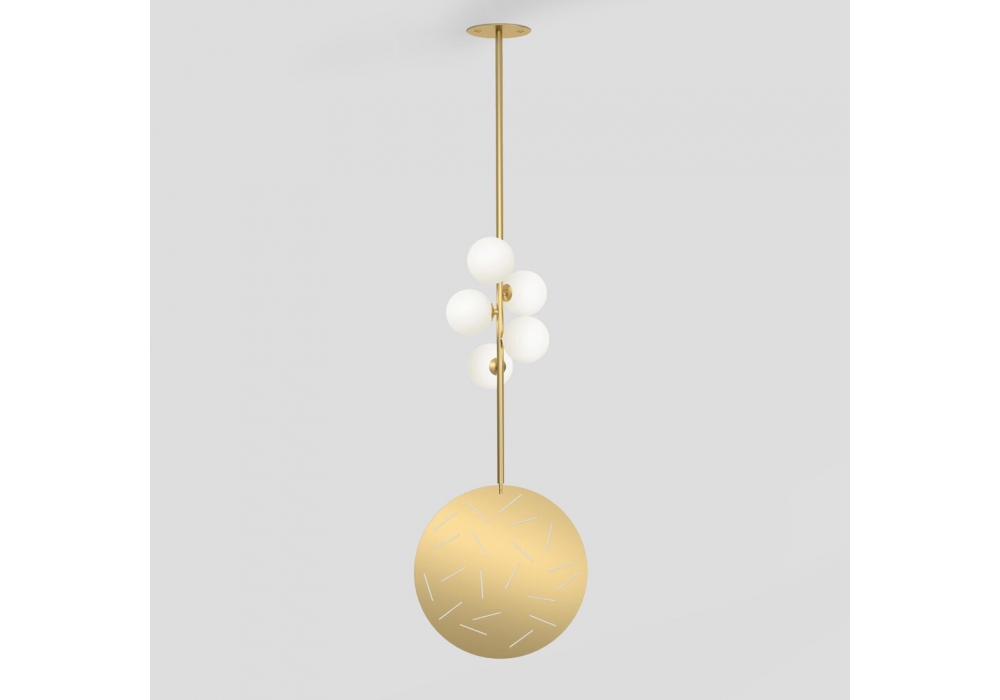 Epic Four firmata da Atelier Areti è una lampada a sospensione realizzata in ottone spazzolato o verniciato nero, diffusori in vetro bianco. Disponibile in due modelli.