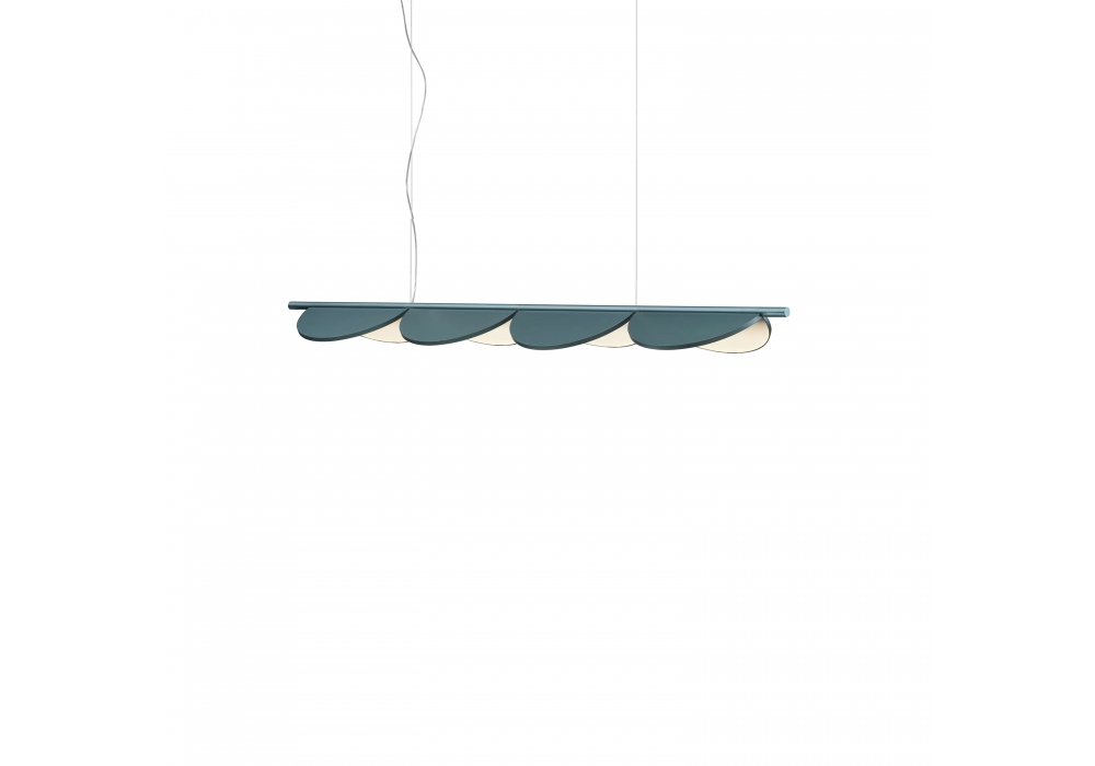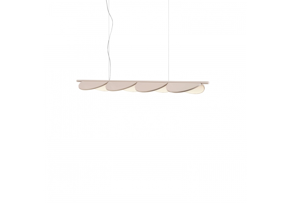 Almendra S firmata da Patricia Urquiola per Flos è una lampada a sospensione a luce diffusa con struttura tubolare in alluminio e terminali in alluminio CNC, disponibili con finitura opaca o metallizzata. Dotata di tecnologia Edge Lighting integrata, consente la rotazione degli elementi luminosi a passi di 60° per modulare la direzione della luce. Rosone in metallo con finitura bianca opaca o primer, permette l'uso di diversi sistemi di regolazione dell'intensità: 1-10V, DALI, pulsante o potenziometro. Fonte luminosa LED inclusa.