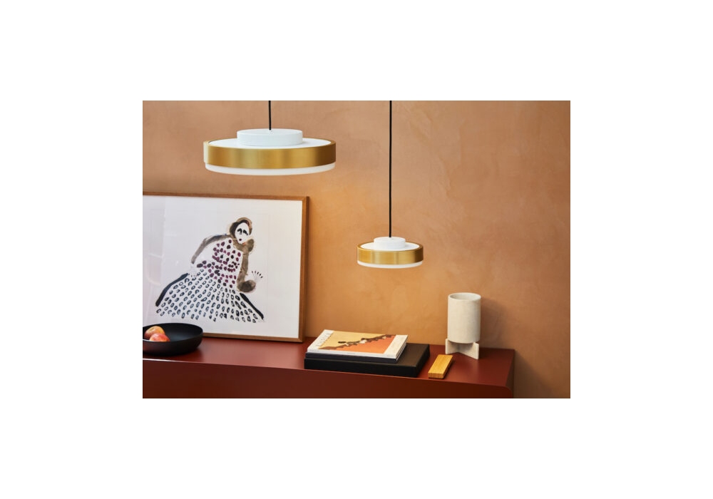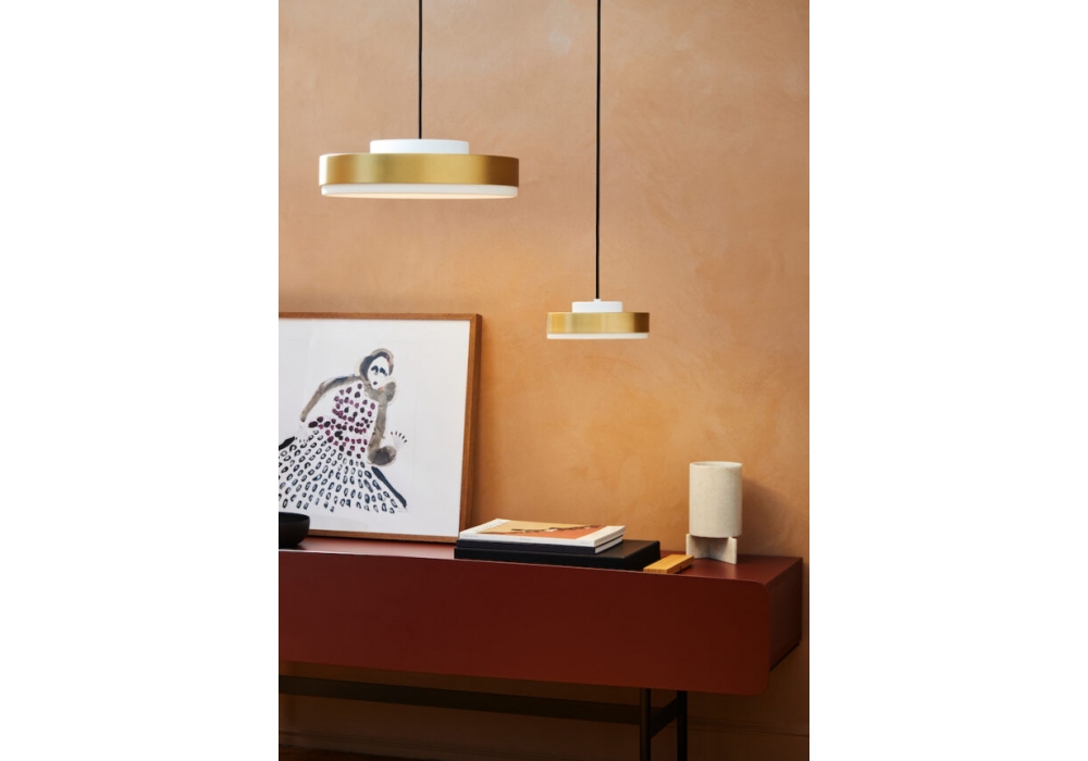 Discus firmata da MKV Design per Contardi è una lampada a sospensione con struttura portante in metallo verniciato. Il diffusore è costituito nella parte superiore da un cerchio in ottone semilucido e quella inferiore in plexiglass bianco opaco. La sorgente luminosa adottata è un modulo LED con sistema di dimmerabilità Triac. Discus è disponibile in differenti finiture, dimensioni e versioni di controllo della luce.