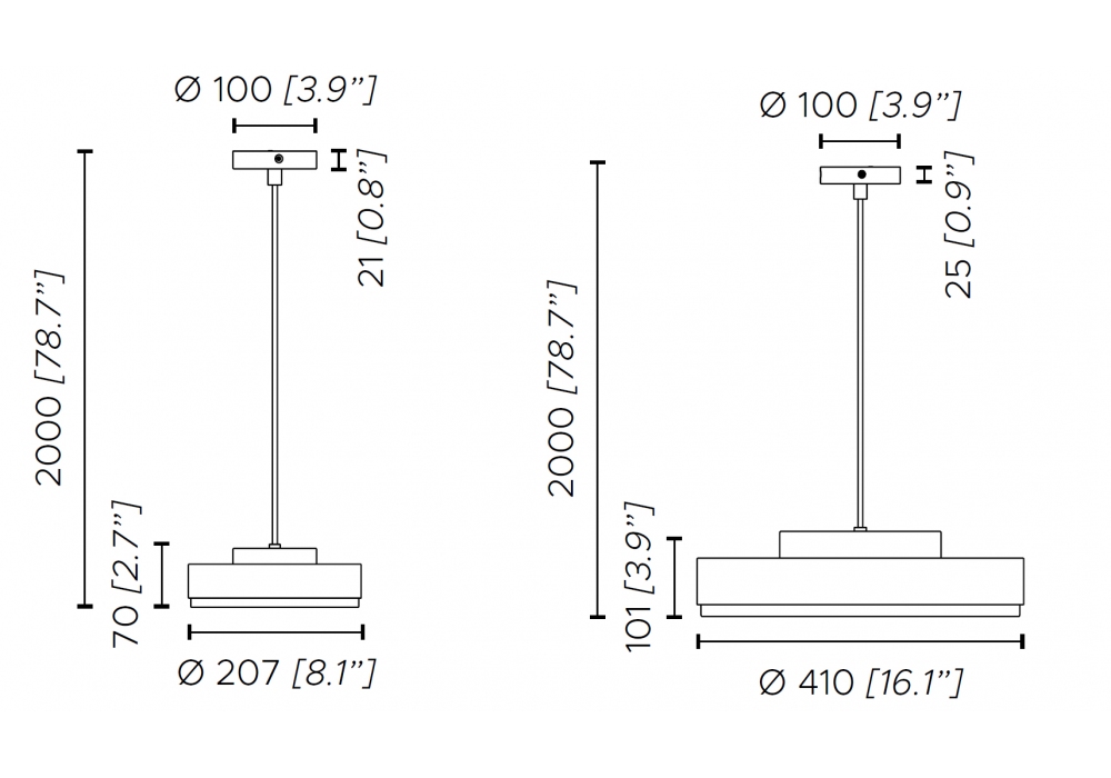 | Dimensioni | Ø 20,7 x H 7/200 cm; Ø 41 x H 10,1/200 cm. |