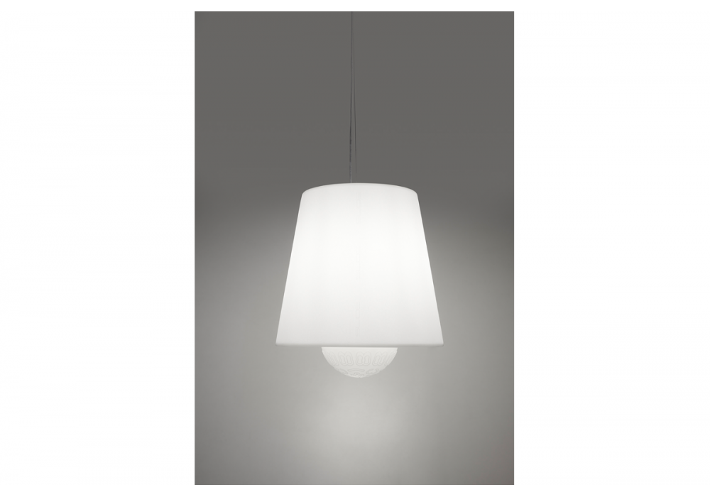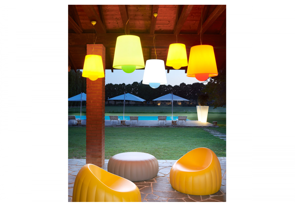 Ali Baba Lanterna firmata da Giò Colonna Romano è una lampada a sospensione in polietilene con una texture dai motivi arabeggianti presenti sul paralume e nella cupolina inferiore. Disponibile in diverse finiture